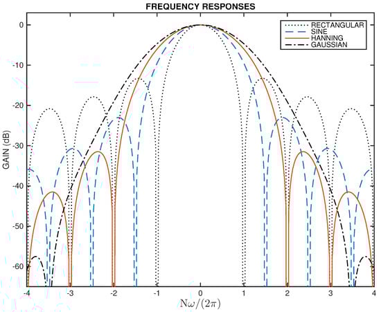 53] (page 47)) consistently revealed that it has a relative poor performance. Thus, only the rectangular, sine, and (shifted) Hanning windows are considered in our simulations and results.