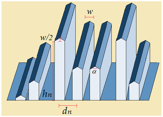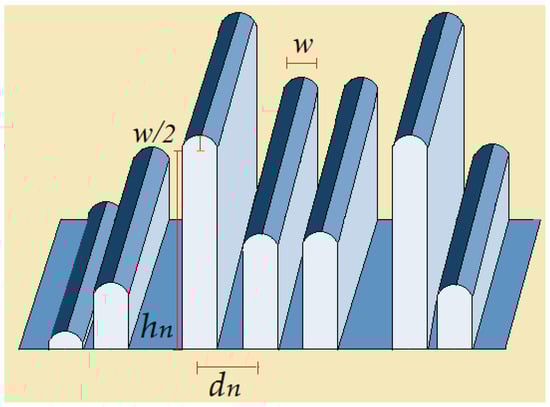 dn is the separation between adjacent diffusers, hn is the height (or depth) for each one, and w is the maximum width or thickness of each diffuser.