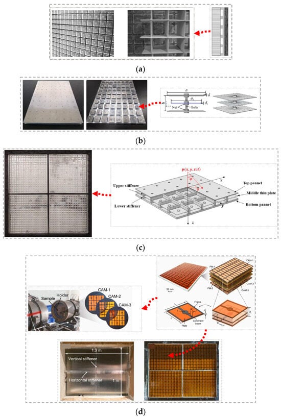 Some research has focused on the use of metamaterial structures combined with other panel structures, such as the combination of sandwich structure and plate-type metamaterials, the combination of double-panel cavity structures and Helmholtz resonators, etc. Therefore, this section introduces the composite panel sound insulation structure based on the metamaterial structure.