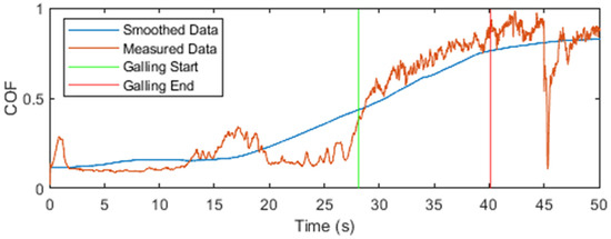 Once the data for each burst were found, individual features were processed with t-tests, linear regression models, and clustering score algorithms to find candidate parameter(s) that best correlate with progressing galling wear, as measured by either COF or Ra. Building on the conclusions presented previously [40], the clustering algorithms were programmed to find 3 clusters to reflect the differing stages of wear, corresponding to “not galling” (COF ≤ 0.3), “transitioning galling” (0.3 < COF < 0.9), and “galling occurring” (COF ≥ 0.9).