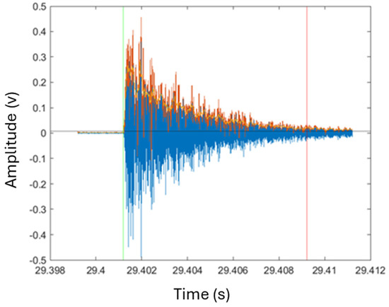 The literature establishes that selecting appropriate AE features for analysis is crucial to minimize the probability of error [9]. It is important to choose some features that depend on peak voltage (which can be affected by the researchers’ choice of AE setup, especially threshold settings) and others that are waveform-dependent and, therefore, independent of the AE setup [10]. As such, a collection of features can be broadly characterized as follows: