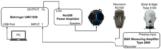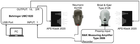 18]. The Head and Torso Simulator (HATS) Type 4128 is a dummy head with built-in ear and mouth simulators that provides a realistic reproduction of the acoustic properties of an average adult human head and torso. It is designed to be used in in-situ electroacoustics tests on, for example, telephone handsets, headsets, audio conference devices, microphones, headphones, hearing aids, and hearing protectors. The HATS we used for the measurements is equipped with a single channel, so measurements were performed for only one channel for both the HATS and Neumann test head models.
