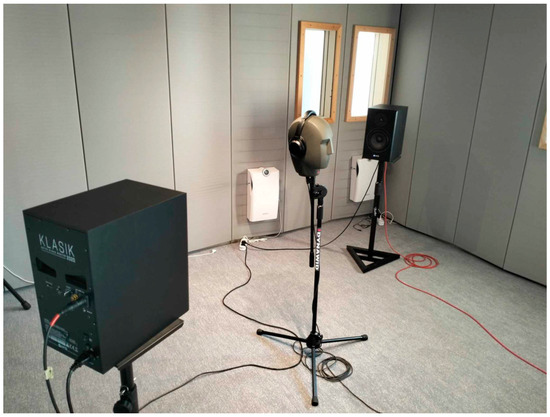Figure 1 shows the interior view of the chamber. The measurement signal was generated by an omnidirectional sound source. The artificial head was placed at a fixed measurement point. The measurement setup is shown in