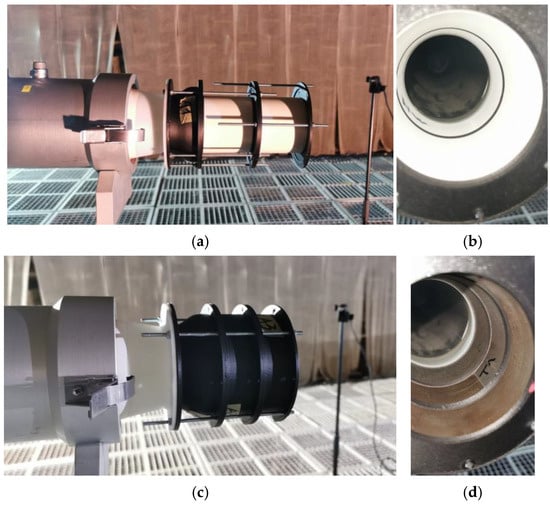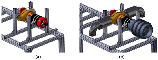For the acoustic study of powder-filled acoustic liners, an experimental stand developed by COMOTI’s drone department was used, which also includes a K45TPG4 turboshaft engine (KingTech, Redingen, Luxembourg). Figure 2 illustrates the engine’s orientation, which is aligned horizontally, as it is on the UAV. Solutions for this engine must consider the following criteria: