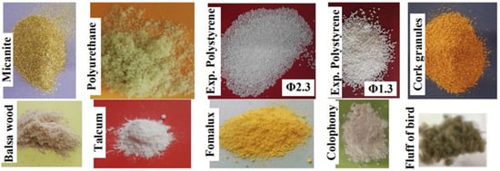 There is also the possibility for the resonant cavity to be filled with a porous material [], thus modifying the impedance of the medium and hence the performance. Additionally, the use of powders inside the cavity can be acoustically interpreted as the introduction of a porous material. The outcome is similar to that of fibrous or porous materials, with the same mechanism of friction being responsible for the effect. A possible acoustic phenomenon caused by the introduction of powders is related to the fact that, at resonance frequencies, the increased velocity of air particles sets the powder particles in motion. These moving particles can interact with each other, generating friction. Thus, in addition to the friction between air molecules described earlier, the friction between the particles themselves could contribute to additional energy dissipation, resulting in increased acoustic absorption.