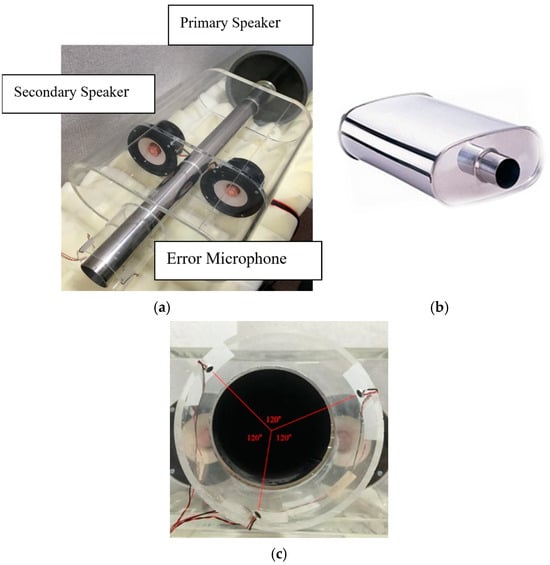 (a) Electronic muffler and (b) commercial muffler #291545. (c) Error microphones.