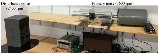 Rotary machines, including motors and engines, are widely used in various applications, and they typically generate noise at their fundamental frequency and its harmonics, which are determined by their rotational speed [,,,]. In practice, 10 or more harmonics often contribute to undesired noise from machines. Furthermore, several types of industrial noise, such as those generated by compressors, fans, and propellers, are periodic. The mechanical motion of these noise sources can generally be observed directly by using an appropriate sensor. Such sensors can provide an electrical reference signal with the same fundamental frequency as the primary noise emitted. In addition, undesirable acoustic feedback in common active noise control (ANC) systems can be eliminated by using a nonacoustic sensor that is synchronized with the noise source. Such a sensor generates a reference signal that contains the fundamental frequency and all of the harmonics of the primary noise. Various techniques can be used to generate such a reference signal for an electronic ANC controller. These techniques are used to reduce periodic noise in many narrowband ANC (NANC) systems, including direct, parallel, and direct–parallel systems.