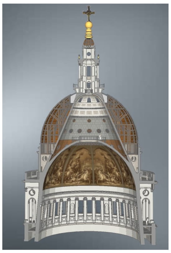 - Zhang, M. St. Paul’s Cathedral Dome: A Synthesis of Engineering and Art. Myles Zhang: Digital Portfolio. 2022. Available online: https://www.myleszhang.org/2020/04/16/st-pauls-cathedral/ (accessed on 28 April 2025).
