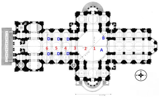 - Alvarez-Morales, L.; Zamarreño, T.; Girón, S.; Galindo, M. A methodology for the study of the acoustic environment of Catholic cathedrals: Application to the Cathedral of Malaga. Build. Environ. 2014, 72, 102–115. [Google Scholar] [CrossRef]