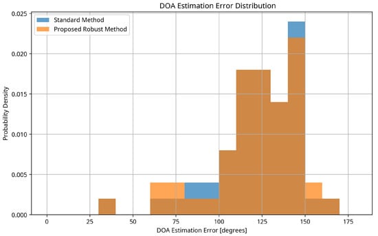 where is the estimated DOA and is the true DOA for the i-th trial. We also analyzed the distribution of estimation errors and the performance under impulsive noise conditions.