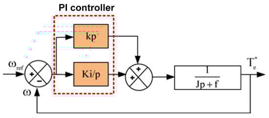 The weighting factor depends on the system parameters, and it has an influence on its performance because it determines the relative importance of torque and stator flux [29,30]. This characteristic is one of the main advantages of the torque predictive technique. The block diagram of the PI speed control loop is given in Figure 9, and it also contains a proportional action and an integral action: