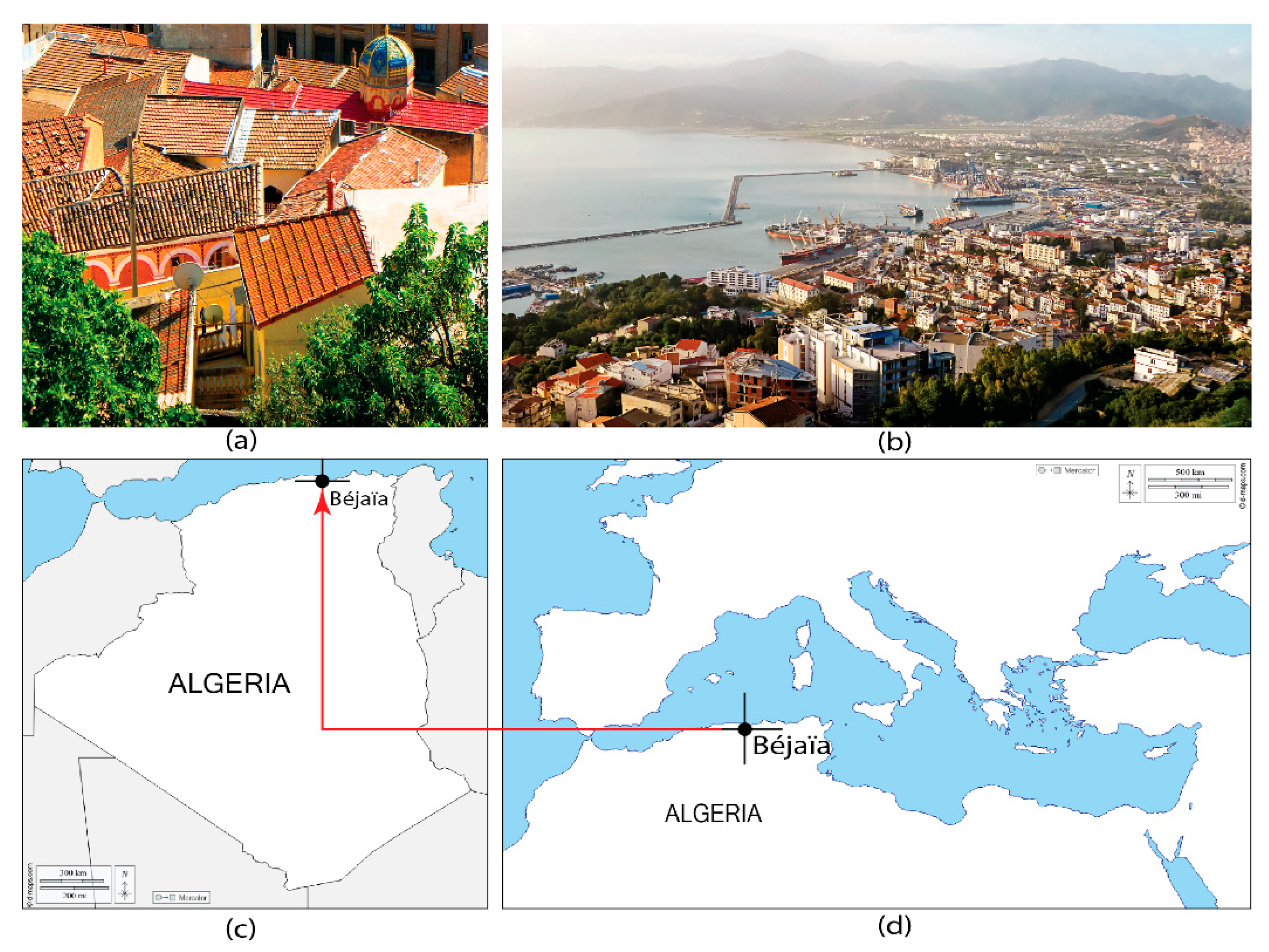 - The Lower City of Béjaïa (LC): Built mainly after the independence of Algeria in 1962, according to a more modern urban planning, it creates a contrast with the old city (Figure 1b).