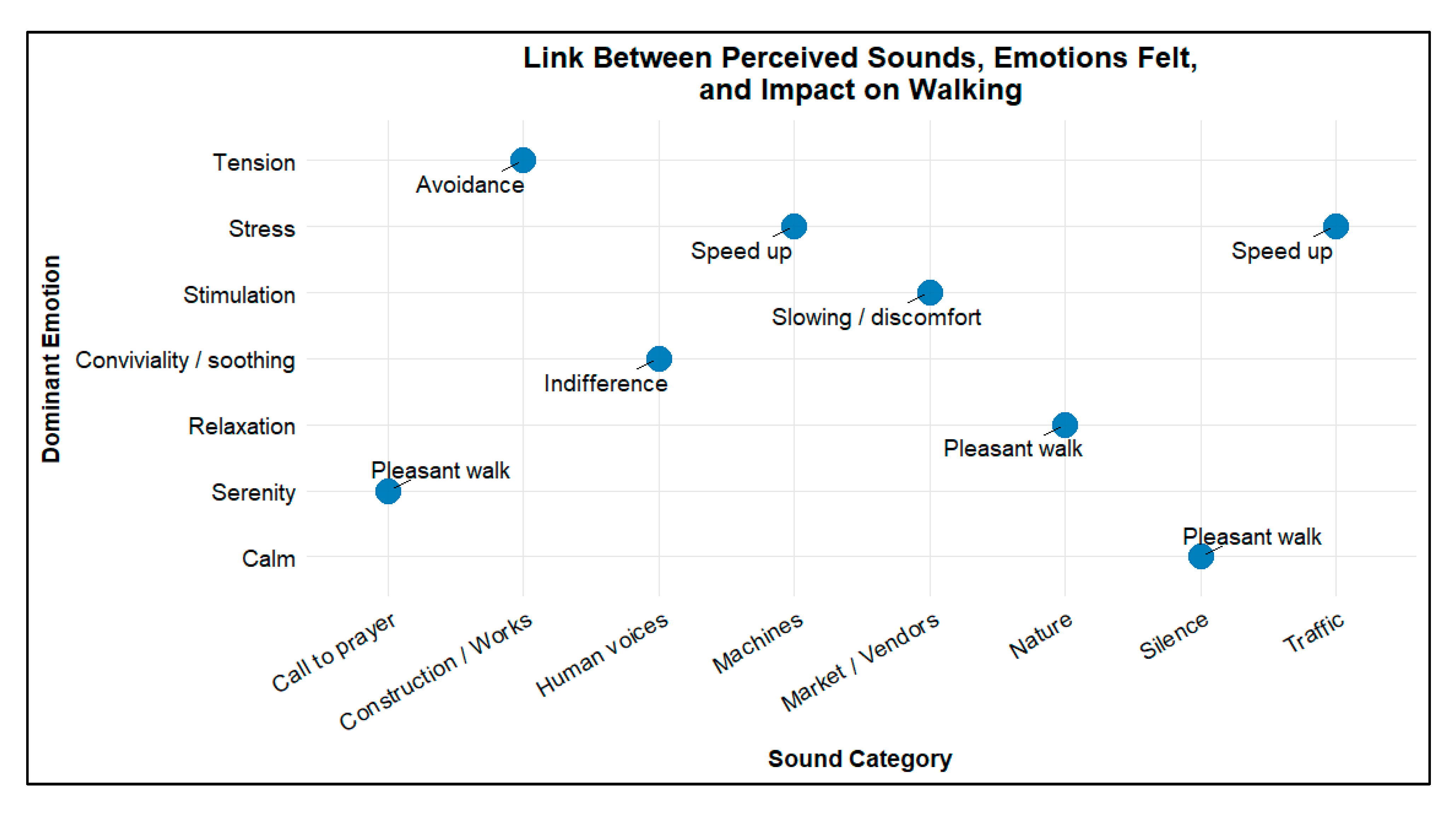 4.3.2. Relationship Between Perceived Sounds, Emotions, and Their Impact on Walking Behavior