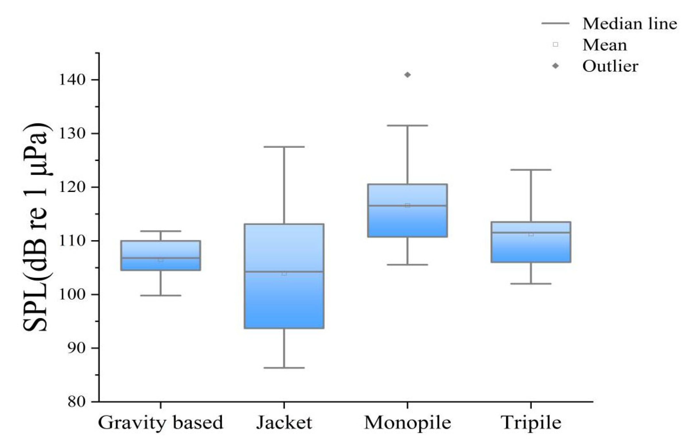 - Fang, Y.-Y.; Sung, P.-J.; Hu, W.-C.; Chen, C.-F. Underwater noise simulation of impact pile driving for offshore wind farm in Taiwan. J. Theor. Comput. Acoust. 2020, 28, 1950009. [Google Scholar] [CrossRef]