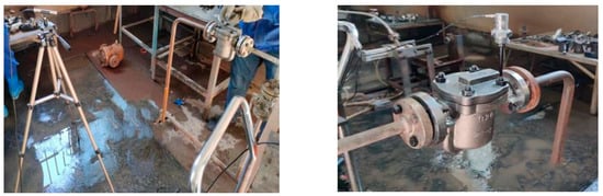 An acoustic test study was conducted on the inverted bucket steam valve before and after optimization. The test bench is arranged in a semi-quiet room, close to the acoustic conditions of open space, and the test rig is shown in Figure 14.