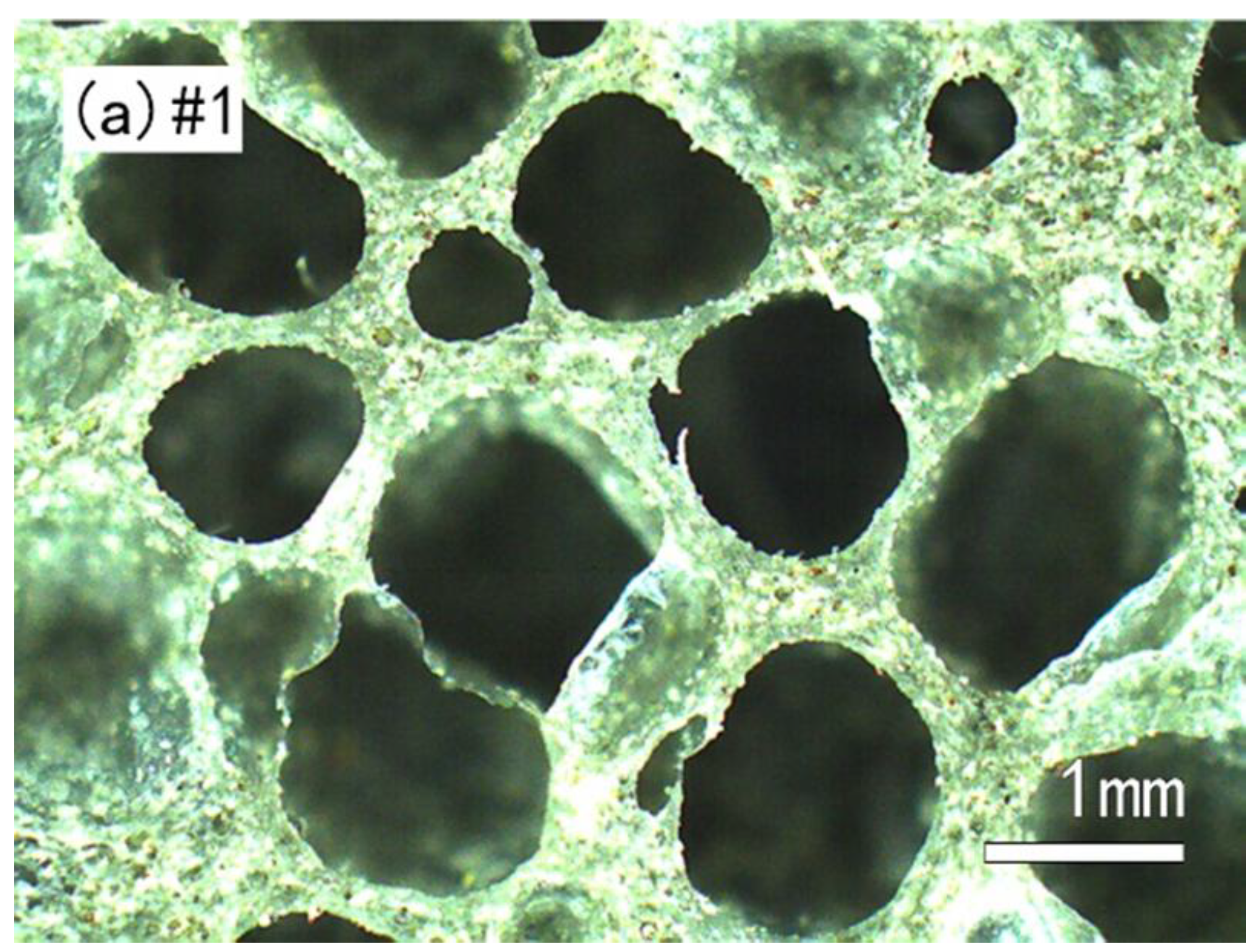 - Pabst, W.; Uhlirova, T.; Gregorova, E.; Wiegmann, A. Young’s modulus and thermal conductivity of closed-cell, open-cell and inverse ceramic foams model-based predictions, cross-property predictions and numerical calculations. J. Eur. Ceram. Soc. 2018, 38, 2570–2578. [Google Scholar] [CrossRef]