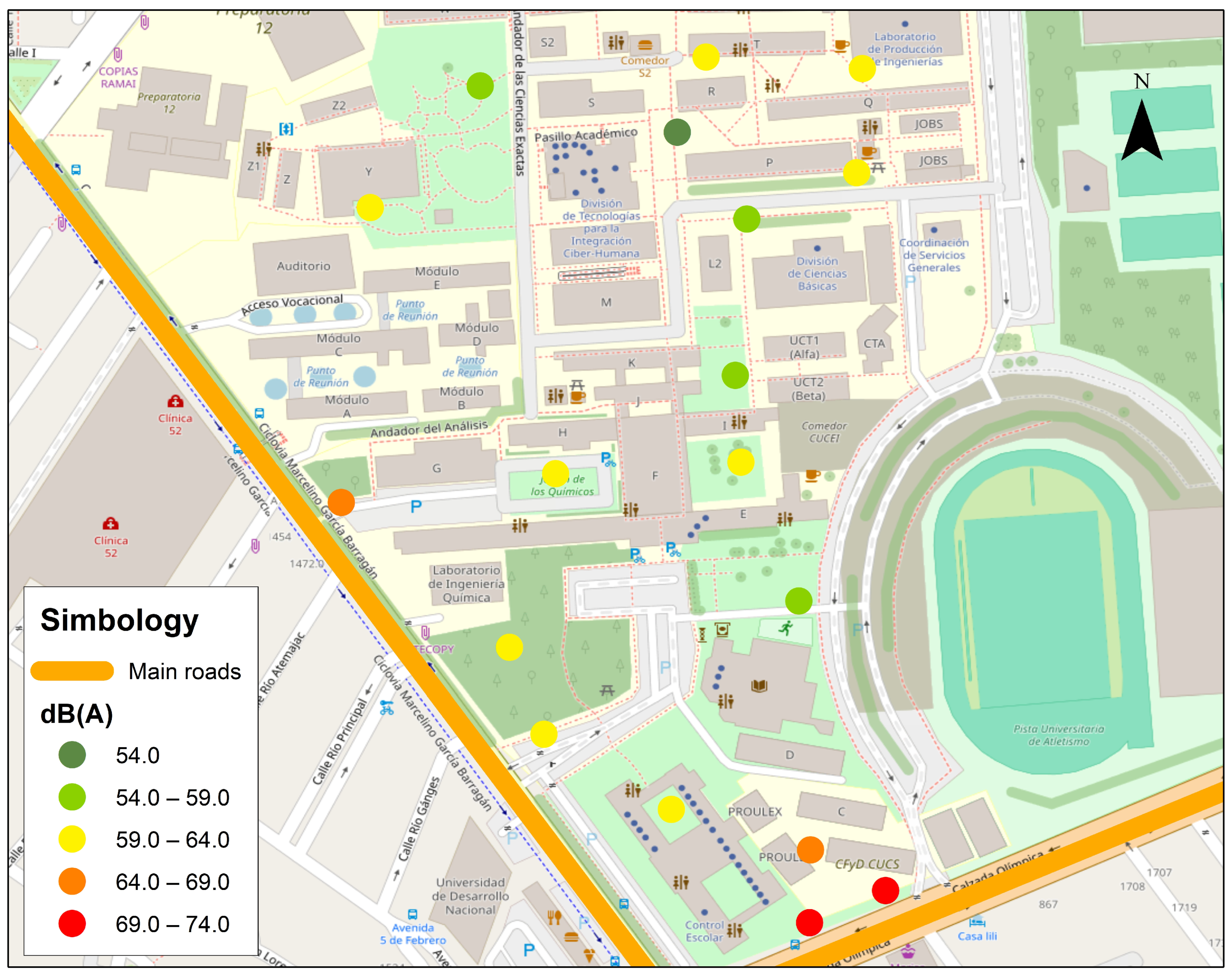 Chicago/Turabian StyleTorres-Pasillas, Gabriel, Arturo Figueroa-Montaño, Martha Georgina Orozco-Medina, and Valentina Davydova-Belitskaya. 2026. "Evaluating Noise Levels and Perception: A Study on the Impact of Noise Pollution in an Urban and Semi-Rural Campus of the University of Guadalajara, Mexico" Acoustics 8, no. 1: 13. https://doi.org/10.3390/acoustics8010013