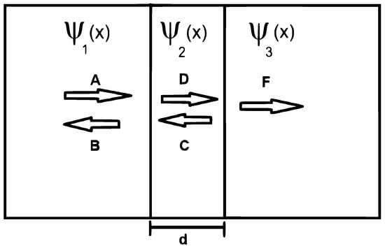 Let us consider the solution of a one-dimensional Schrödinger equation for a given value of energy E in presence of potential barrier V. The solution can be expressed in three parts, , and , respectively, the wave function, on the left, inside and on the right of the barrier, as in Figure 1: