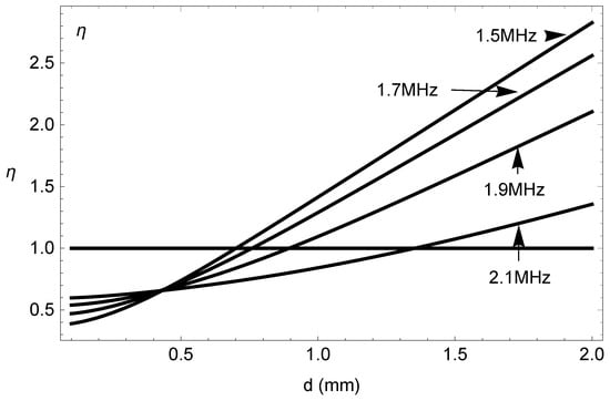 If we adjust the width frequency MHz (wavelength mm) just below the cut-off frequency MHz, in Table 1 are indicated the values of the traversal phase time and the corresponding traversal velocity defined as the ratio between the length of the barrier (evanescent zone) and the traversal phase time, corresponding to different lengths d of the barrier. It is possible to note the so-called Hartman effect, for which the traversal time tends to a constant limit value, independent of the barrier length, resulting in a rapid increase in traversal velocity; the effect happens when, increasing the barrier length d, it becomes opaque, i.e., . Remembering that the velocity of the bulk transverse waves m/s represents the analogue of the velocity of light in the medium that constitutes the electromagnetic wave guide, it is possible to note that, with these parameters, the acoustic analogue of the apparent superluminal behavior is already reached with a barrier length corresponding to few wavelengths of the signal.