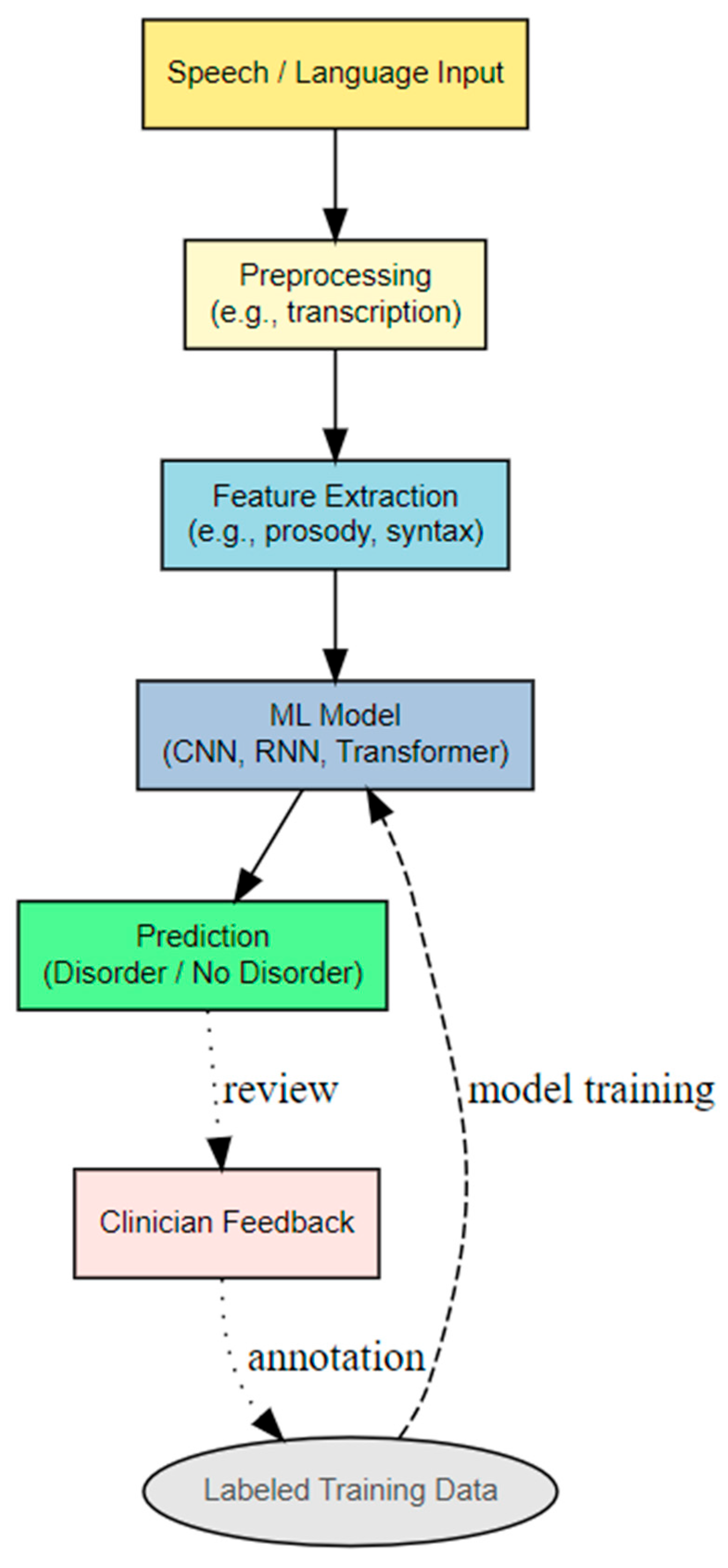 Chicago/Turabian StyleGeorgiou, Georgios P. 2025. "Envisioning the Future of Machine Learning in the Early Detection of Neurodevelopmental and Neurodegenerative Disorders via Speech and Language Biomarkers" Acoustics 7, no. 4: 72. https://doi.org/10.3390/acoustics7040072