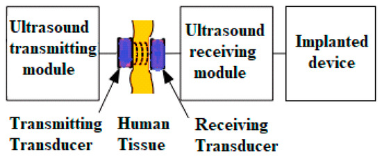 - Kawanabe, H.; Katane, T.; Saotome, H.; Saito, O.; Kobayashi, K. Power and Information Transmission to Implanted Medical Device Using Ultrasonic. Jpn. J. Appl. Phys. 2001, 40, 3865–3866. [Google Scholar] [CrossRef]