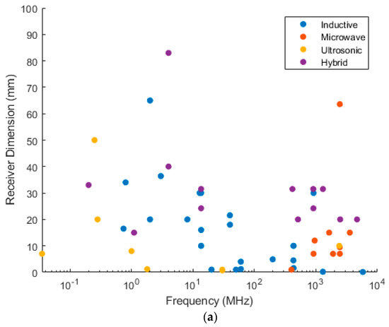 | [114] | 2020 | 13.56 MHz, 415 MHz, 905 MHz, 1300 MHz | - | 10, 0.5, 4.6, 6.5 | 15–110 | = 79.6 | = 31.5 | Inductive and Microwave |