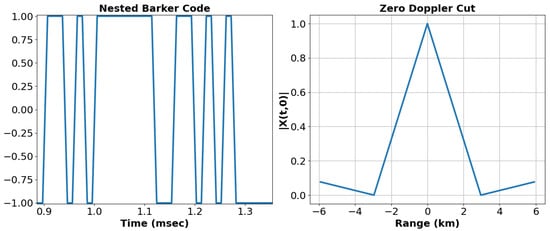 The Barker code is a famous binary code used in pulse compression and consists of binary sequences that guarantee that the peak-to-peak sidelobe ratio of the autocorrelation is M, where M is the size of the Barker code. Another important feature of the Barker code is that the range resolution increases by M in relation to the rectangular pulse. We can further increase this resolution by using nested Barker codes [].