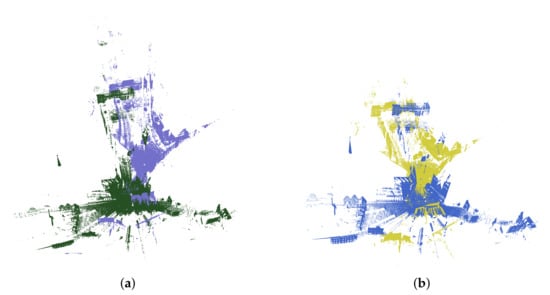 - Agamennoni, G.; Fontana, S.; Siegwart, R.Y.; Sorrenti, D.G. Point clouds registration with probabilistic data association. In Proceedings of the 2016 IEEE/RSJ International Conference on Intelligent Robots and Systems (IROS), Daejeon, Korea, 9–14 October 2016; pp. 4092–4098. [Google Scholar]