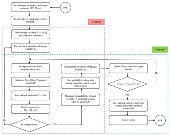 A flowchart of the algorithm is shown in Figure 1. The proposed algorithm was tested for different damage scenarios for a simply supported beam. Details on damage modeling and results from the algorithm are provided in the subsequent sections.