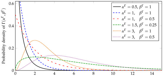 Probability density functions of gamma distributions for different parameter choices. For , the function has the mode at , while for , the function tends to ∞ at zero. In our proposed method, the network selects a distribution shape for each inharmonicity coefficient by its outputs .