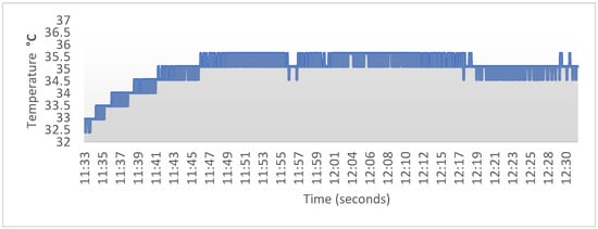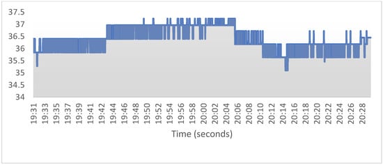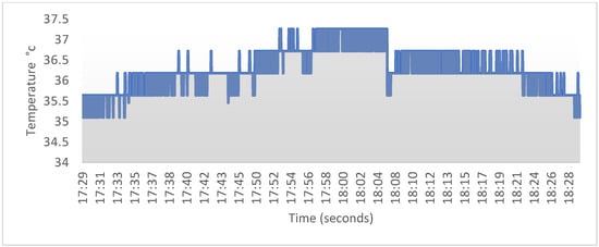 It can be inferred from the information mentioned that data acquisition concerning temperature monitoring is a complicated procedure that requires carefully examined clues, large groups of people, and many other factors to guarantee the approximate maximum validity. Figure 8, Figure 9 and Figure 10 demonstrate the temperature signals acquired during the three use intervals, while Table 4 and Table 5 provide average values for different periods.