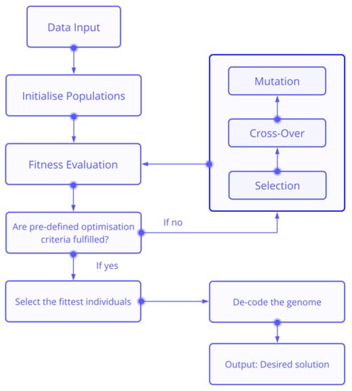 - Sivanandam, S.N.; Deepa, S.N. Genetic Algorithms. In Introduction to Genetic Algorithms; Springer: Berlin/Heidelberg, Germany, 2008; pp. 15–37. [Google Scholar]