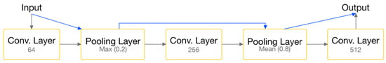 Skip layers that connected the prior convolutional layers to the following convolutional layer were assigned filter sizes of 3 × 3 with a stride of 1.
