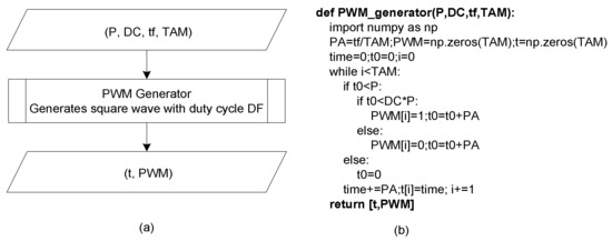 Function that generates the output PWM signal: (a) Algorithm and (b) Python code.