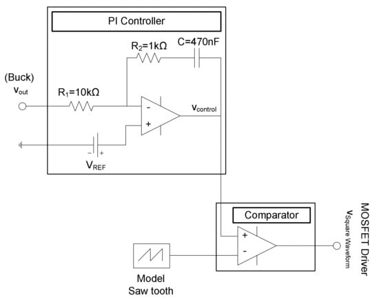 As can be seen in Figure 8, the control circuit is composed of three fundamental elements: the PI controller, the Comparator and the Saw Tooth Generator.