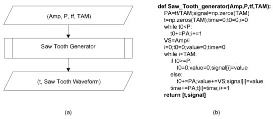 Function that generates the Saw Tooth Waveform: (a) Algorithm and (b) Python code.