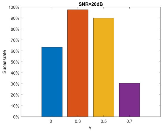 Success rate regrading different values of with = 4, SNR = 20 dB, =.