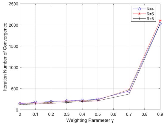 To explore the role of the weighting parameter , we will consider the iteration of matrix A from (32). First, (32) can be transformed to an iterative sequence as follows