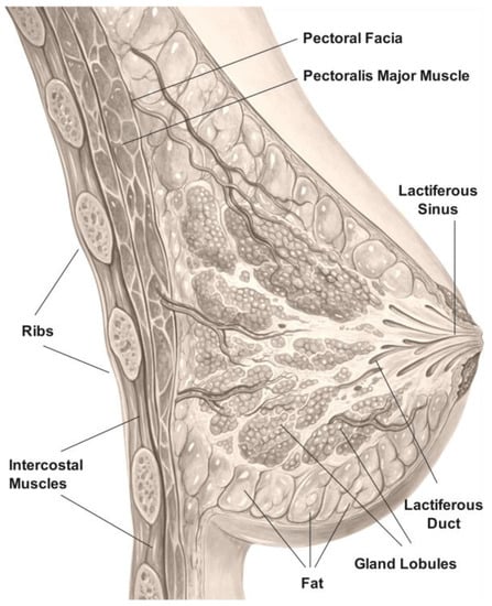 Overview of a typical breast. (Adapted from here. Original image by Patrick J. Lynch, medical illustrator; C. Carl Jaffe, MD, cardiologist, is licensed under the Creative Commons Attribution 2.5 Generic license).