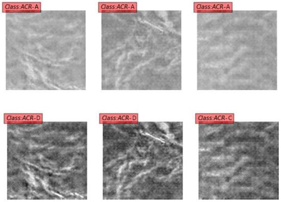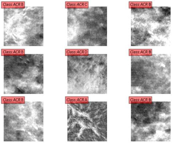 Examples of artificially generated images of ACR-A, ACR-B, ACR-C, and ACR-D classes using the GAN-ACR network. (Note that checkerboard effects and artifacts are present.)