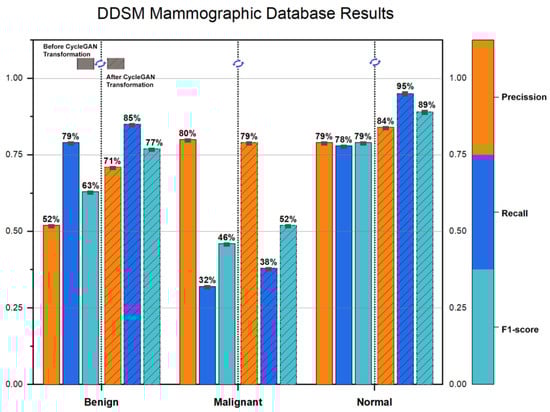 CNN performance before and after CycleGAN transformations—DDSM—Mammographic Database.