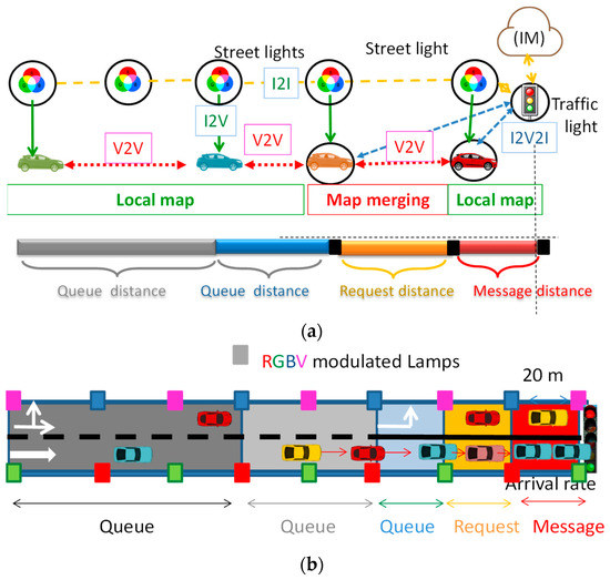 28. Vieira, M.A.; Vieira, M.; Louro, P.; Vieira, P. Cooperative vehicular systems: Crossroad management through visible light. Opt. Eng. 2021, 60, 115106. [Google Scholar] [CrossRef]