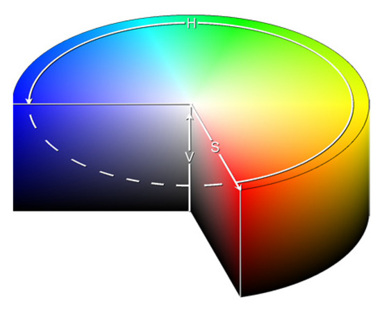 - Hue Saturation Brightness, Wikipedia, Wikimedia Foundation. Available online: https://it.wikipedia.org/wiki/Hue_Saturation_Brightness (accessed on 13 May 2023).