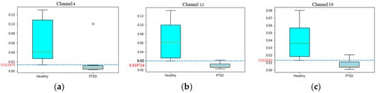 These results are consistent with previous reports for channels F4 and Pz as important channels to differentiate healthy subjects and subjects with PTSD [,]. The study by Rutter [] found F4 and Pz to be channels associated with the disorder [].