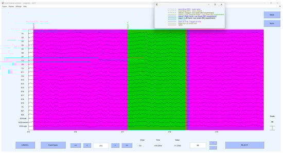 In this study, EEG-LAB is used as the primary tool for data visualisation. EEG-LAB is an add-on for MATLAB that provides various features for analysing electrophysiological data, including processing of EEG, visualisation, and integration of algorithms. Figure 2 shows the visualisation of the EGG signals in EEG-LAB.