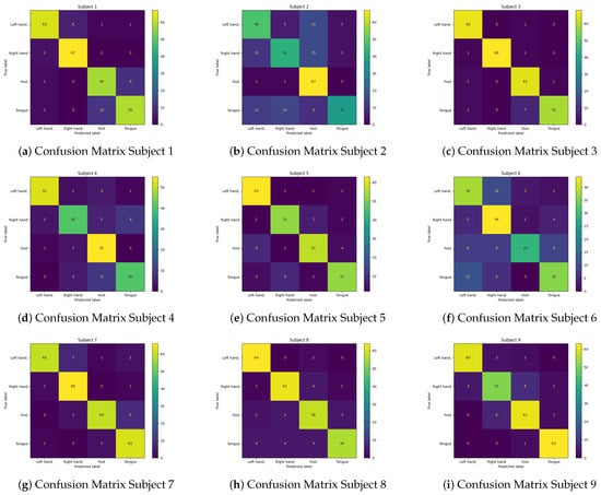 After training 81 experiments, a fixed result and a variable result are selected. In terms of the fixed result, the best hyperparameters for all 9 subjects are selected based on the average accuracy. Regarding the variable result, the best hyperparameters for each subject are selected. Table 4 shows the hyperparameters of the variable model.