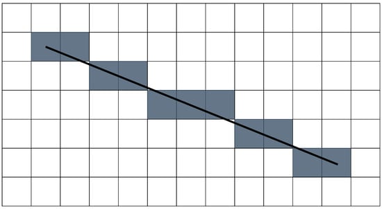 - Bresenham, J.E. Algorithm for Computer Control of a Digital Plotter. IBM Syst. J. 1965, 4, 25–30. [Google Scholar] [CrossRef]