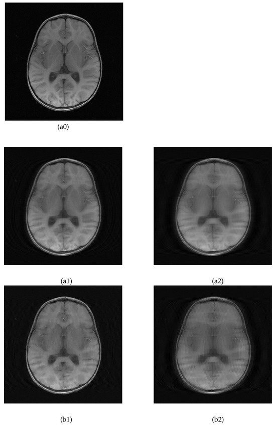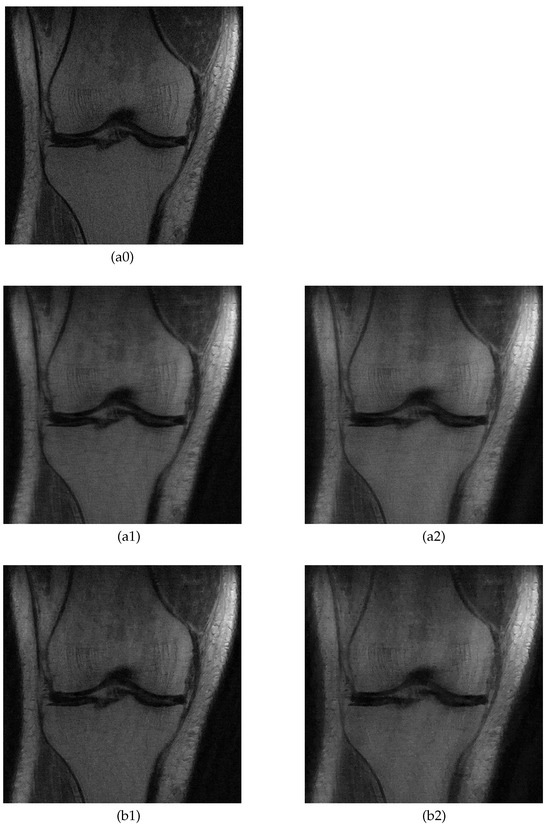 All MRI data in Figure 6(a0), Figure 7(a0), Figure 8(a0) and Figure 9(a0) have been made publicly available at the fastMRI dataset and can be accessed at https://fastmri.med.nyu.edu/ (accessed date: 1 July 2022).