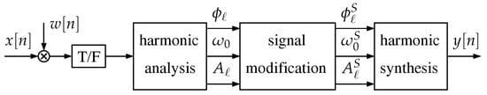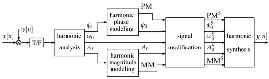 In fact, in many applications, such as speech enhancement and time-scale or pitch-scale modification of speech [], and special effects in singing and music [], harmonic sinusoids are individually modified in terms of their frequency, magnitude, and phase trajectories, as suggested by Figure 1.