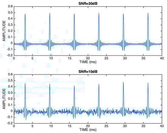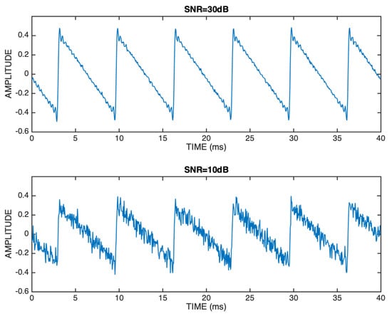 - A discrete-time version of the signal represented by Equation (1) is first obtained using a convenient sampling frequency (), i.e., we have the following:where represents the sampling period and corresponds to the reciprocal of the sampling frequency ().